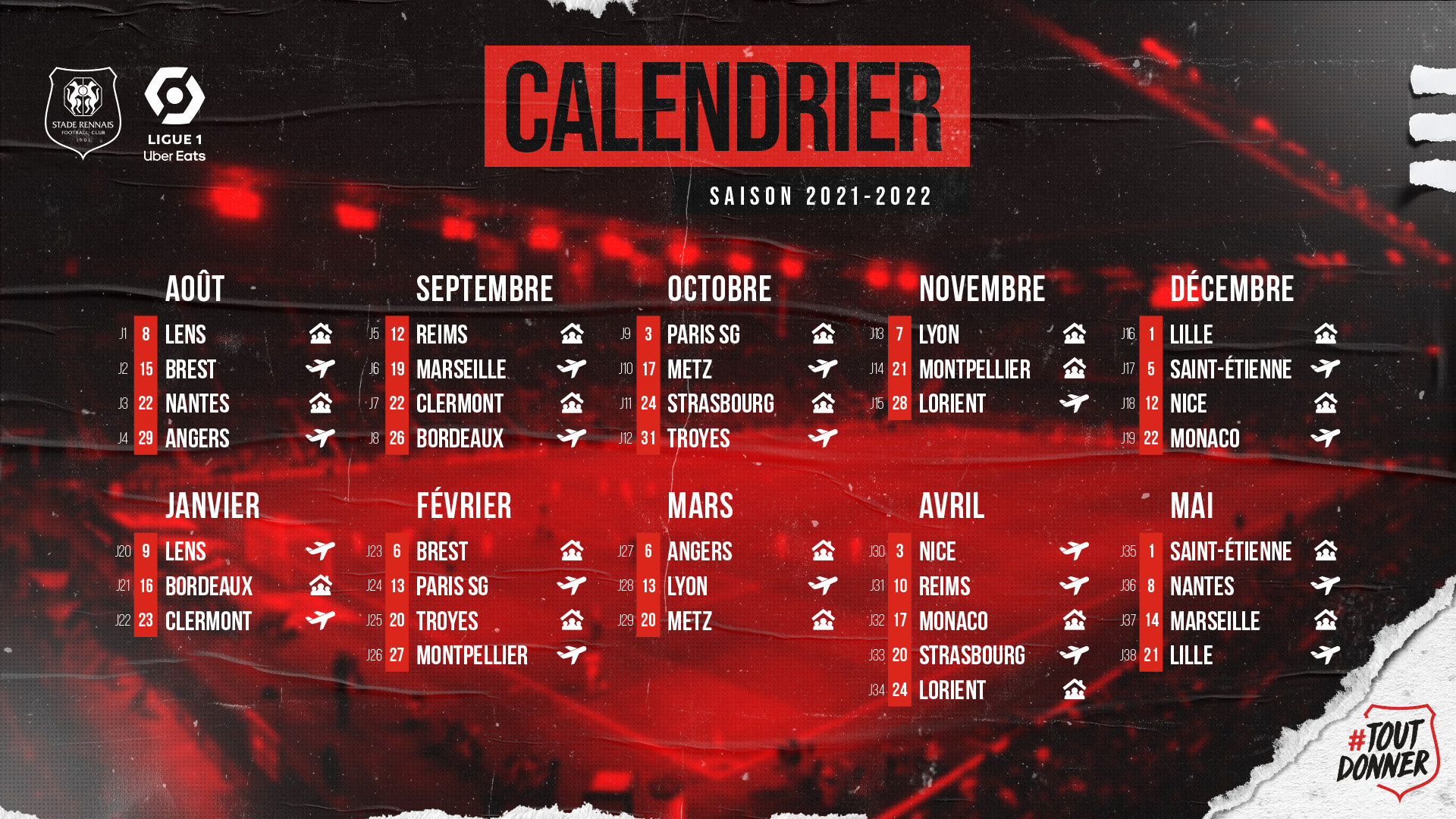 Stade Rennais F C On Twitter Pros Voici Notre Calendrier Pour La Saison 2021 2022 De Ligue1ubereats Allezrennes Toutdonner